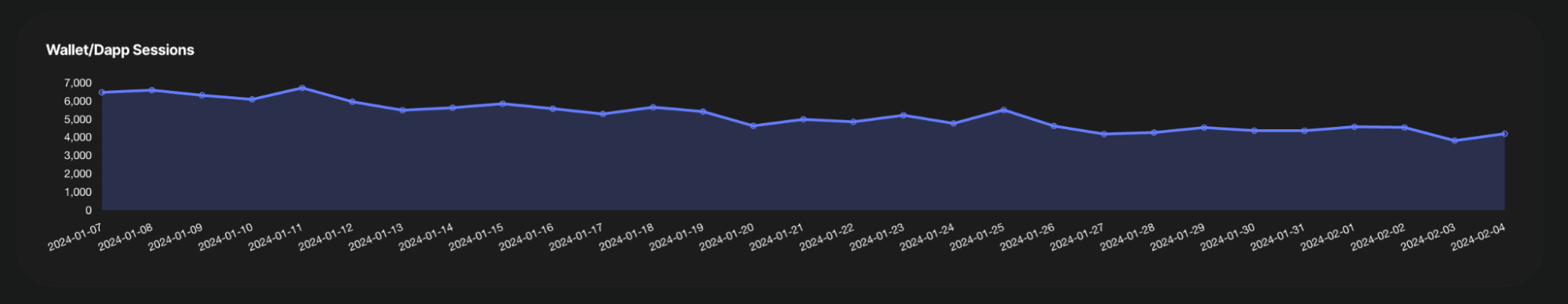 Shows the daily trend of sessions created when the user signs a message with their connected wallet.