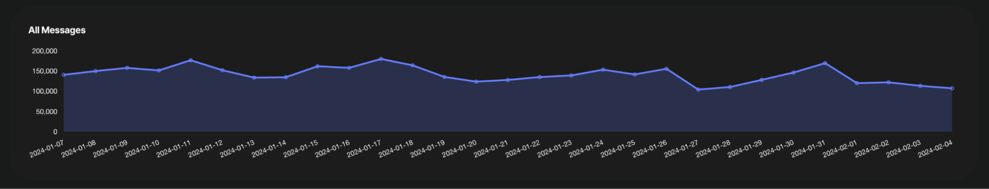 Shows the total messages exchanged between the configured Reown SDK and the Relay Server.