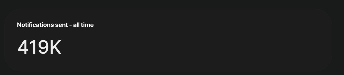 This table shows the total count of subscribers by notification type over a 30 day period.